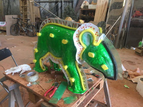 Reproducció científica d´un tapir prehistòric, Tapirus arvernensis, i la seva cria, a partir d´un esquelet de 3,1 milions d´anys trobat en el Camp dels Ninots, Caldes de Malavella.